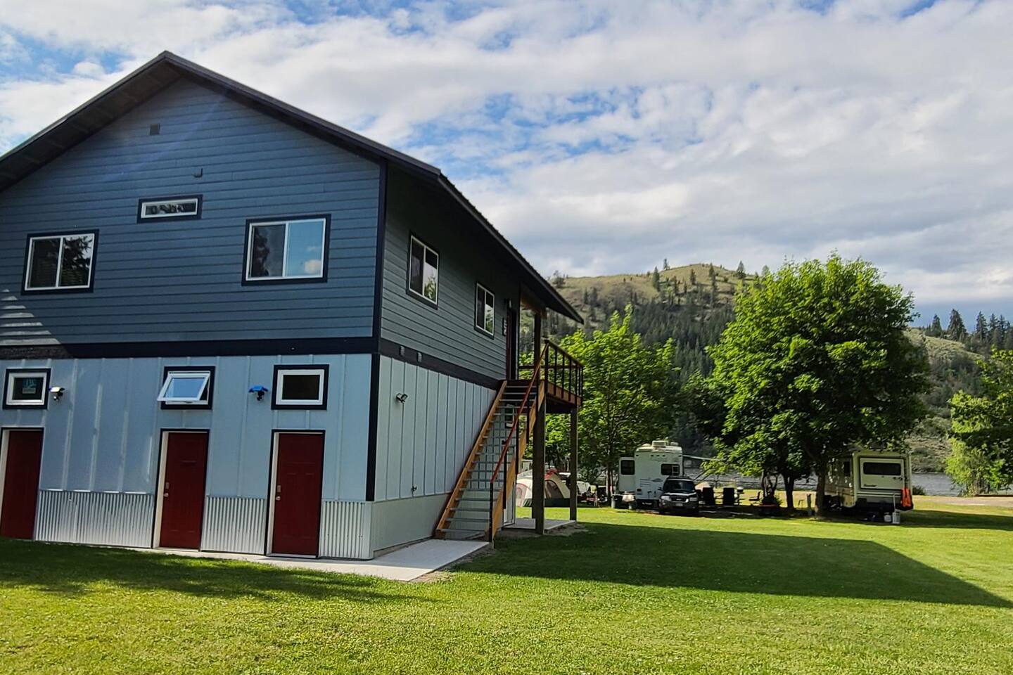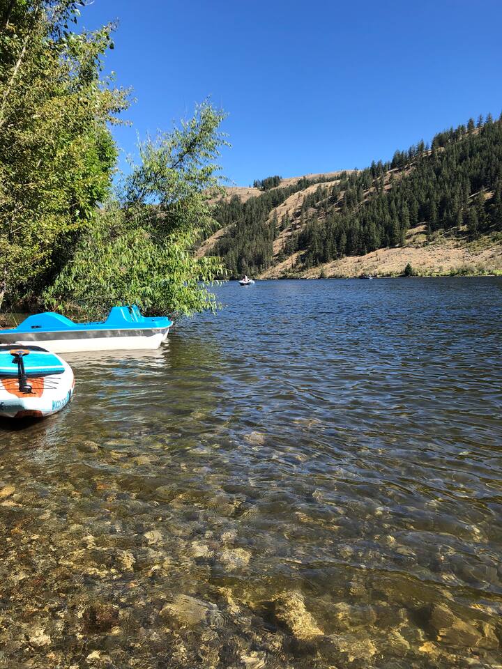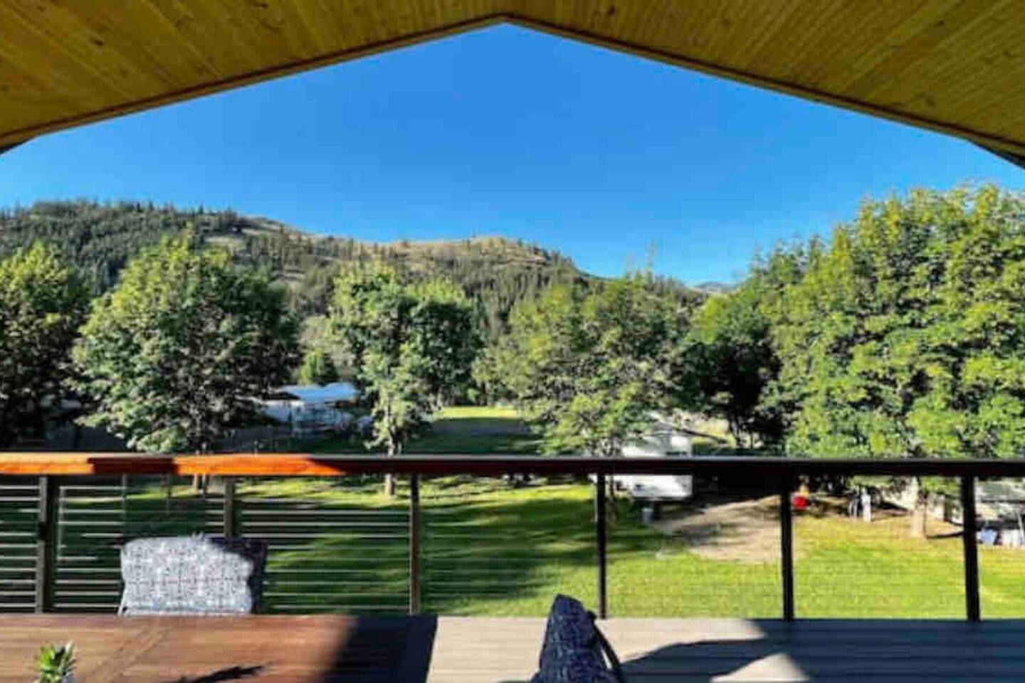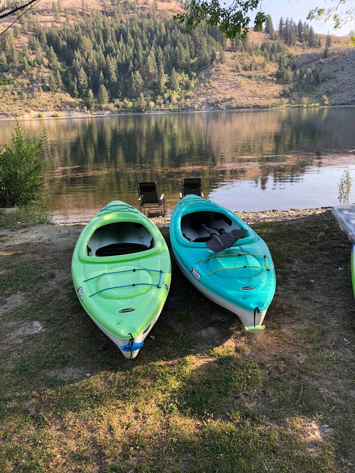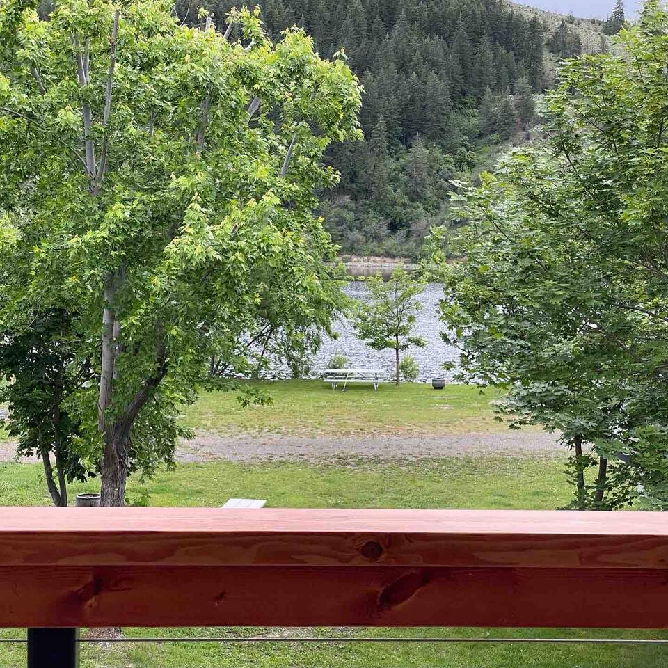 You'll have full and private access to the chalet and the property. All the amenities and comfort of home await. The kitchen has all the necessities to prepare a meal. It is stocked to meet your basic needs for when you finally come in from the various adventures available. Fishing here is great (Trout, Bass, Perch, and Kokanee), step out to the large deck area to grill your day’s catch outside on the barbeque! As a former RV Resort, you'll also have access to the remaining amenities, and enjoy water access just steps away from your front door. Plenty of portable and stationary fire pits to set up your own space or join with others who may be also vacationing on site. Needing space for an extended group?</b> Often available are RV and tent spaces to accommodate those larger groups. Exterior bathrooms and showers are available outside the chalet. Family gatherings, small group retreats, and wedding parties have taken advantage of the property as a whole. Contact us to discuss these options if you have a small group event in the works.
