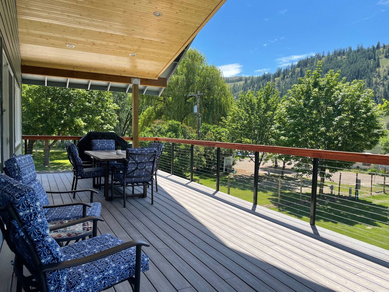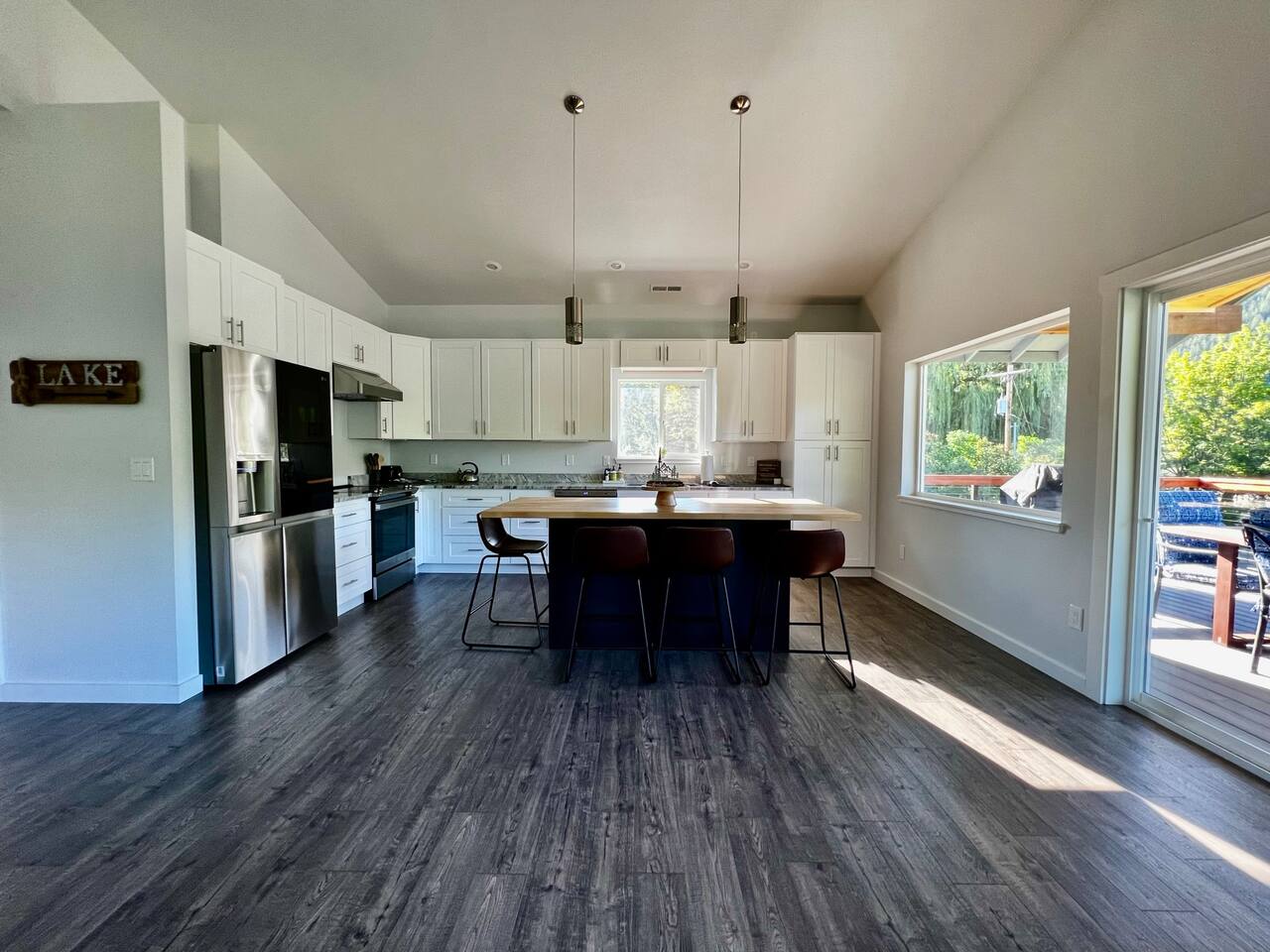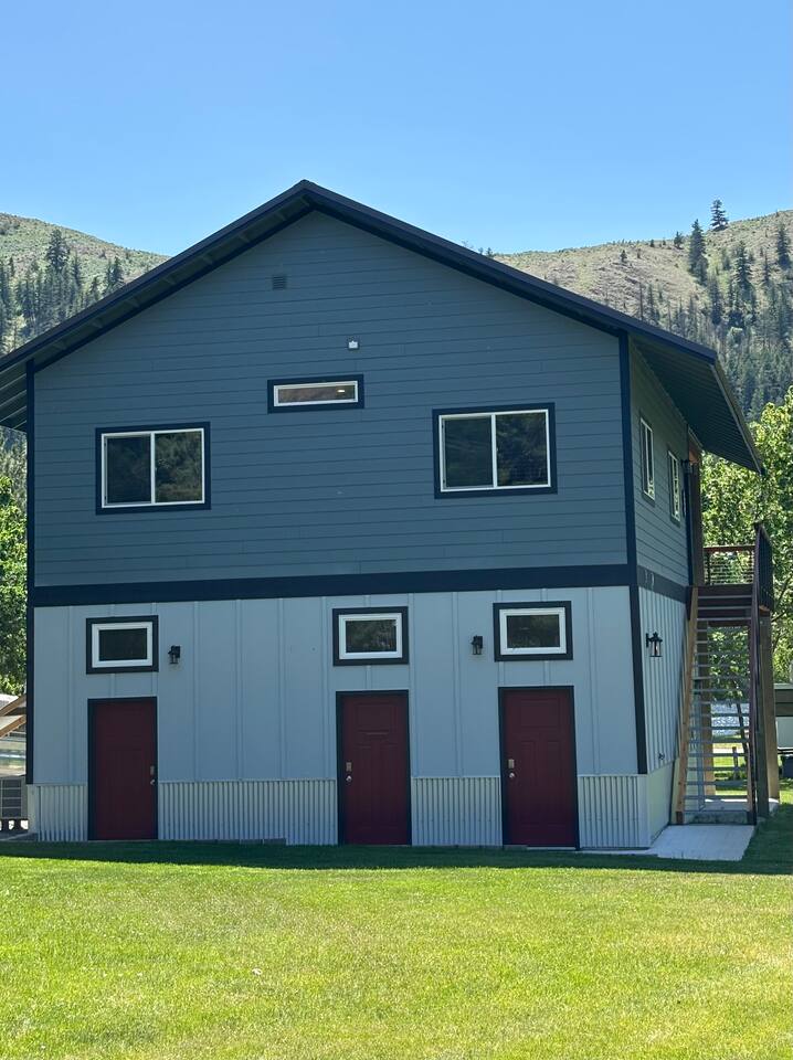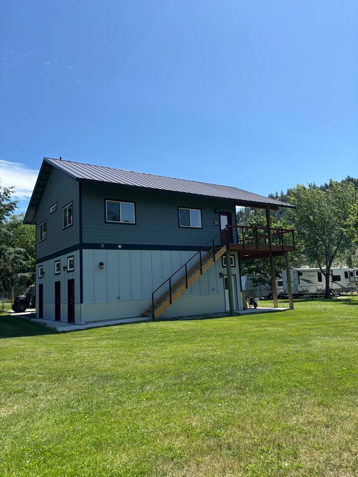 You'll have full and private access to the chalet and the property. All the amenities and comfort of home await. The kitchen has all the necessities to prepare a meal. It is stocked to meet your basic needs for when you finally come in from the various adventures available. Fishing here is great (Trout, Bass, Perch, and Kokanee), step out to the large deck area to grill your day’s catch outside on the barbeque! As a former RV Resort, you'll also have access to the remaining amenities, and enjoy water access just steps away from your front door. Plenty of portable and stationary fire pits to set up your own space or join with others who may be also vacationing on site. Needing space for an extended group?</b> Often available are RV and tent spaces to accommodate those larger groups. Exterior bathrooms and showers are available outside the chalet. Family gatherings, small group retreats, and wedding parties have taken advantage of the property as a whole. Contact us to discuss these options if you have a small group event in the works.