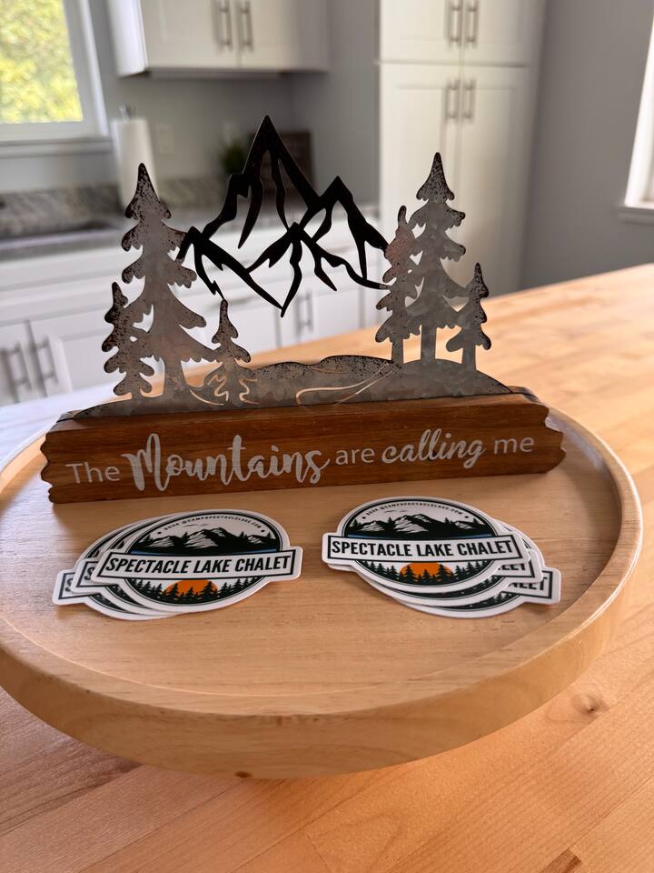 Unwind at this stunning and Lakefront Property. Visit our two bed chalet with modern comforts nestled into and surrounded by nature and outdoor activities. Docks provide easy access to Spectacle Lake. Fishing, water-sports, or relaxation, just 200 ft from the front door. Formerly a 2+ acre RV resort property makes extended/larger group stays an option (see below) with picnic tables, fire pits, and more available for your use. Many additional outdoor adventures await, off property.